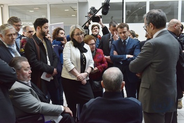 Emmanuel Macron podczas wizyty w przedsiebiorstwie APF Entreprise 93