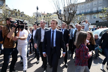 Emmanuel Macron podczas wizyty na Korsyce