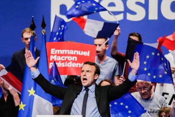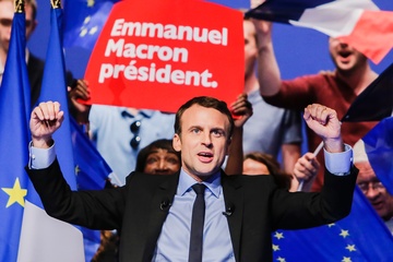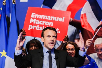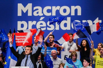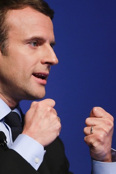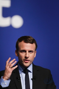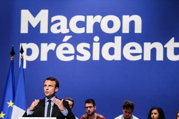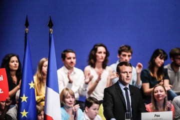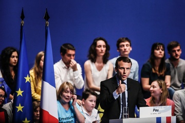 Emmanuel Macron na spotkaniu wyborczym w Pau