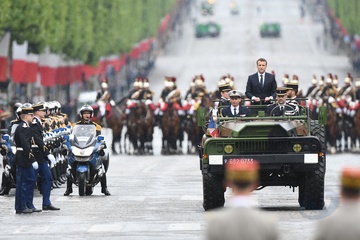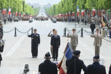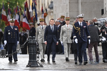 Emmanuel Macron oddal hold nieznanym zolnierzom przy Luku Triumfalnym