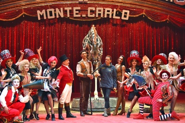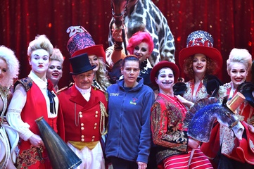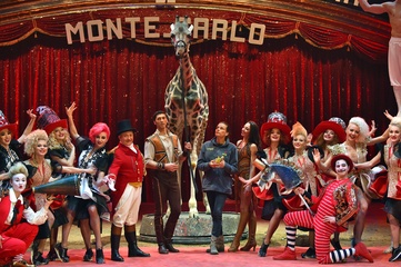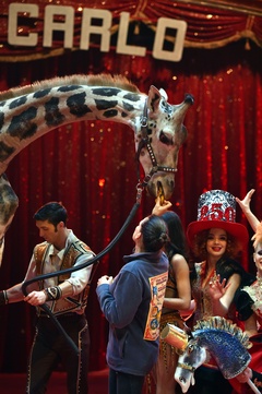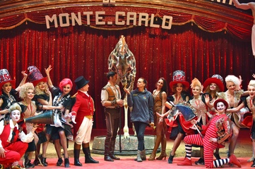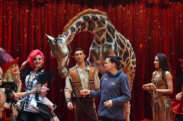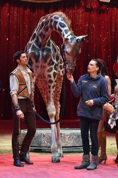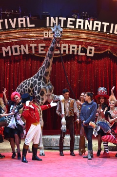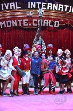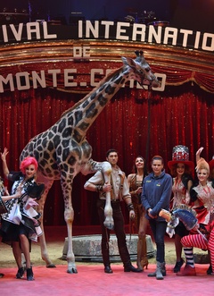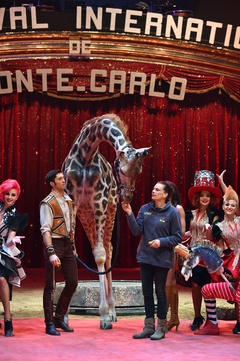 Ksiezniczka Stefania karmi zyrafe na 42. Monte-Carlo International Circus Festival