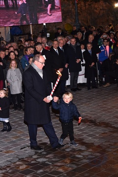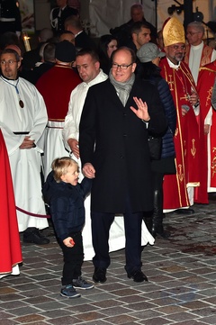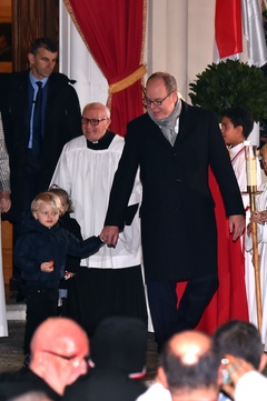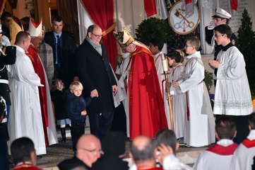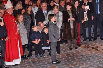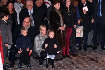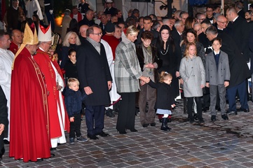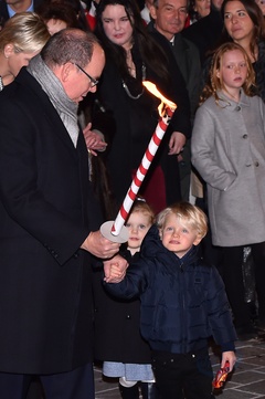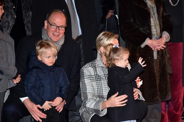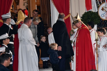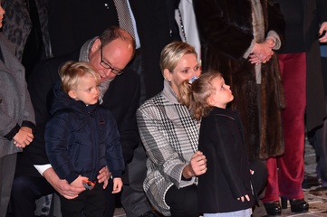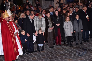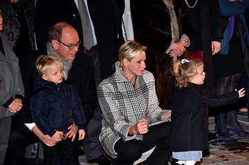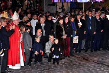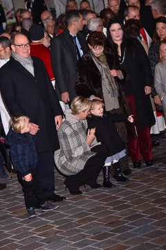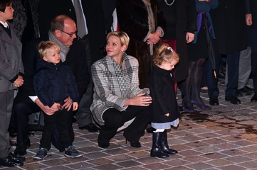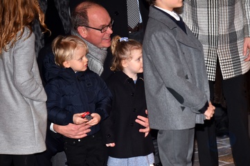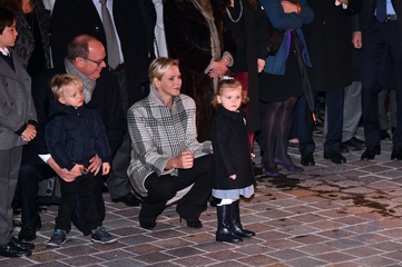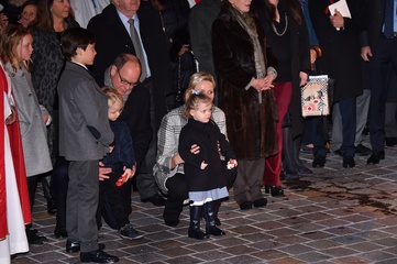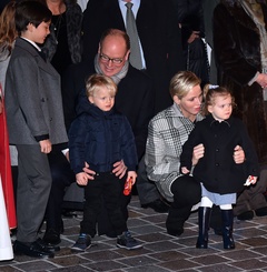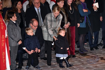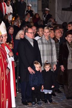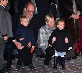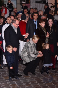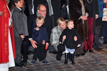Ksiaze Albert i ksiezna Charlene z dziecmi na ceremonii - Sainte Devote