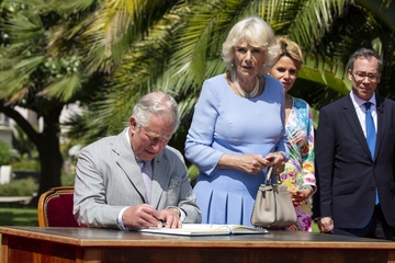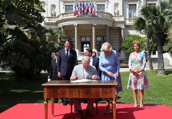 Ksiaze Karol i ksiezna Camilla podczas wizyty na Lazurowym Wybrzezu