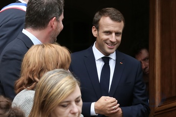 Emmanuel i Brigitte Macron na otwarciu Chateau de Ferney-Voltaire