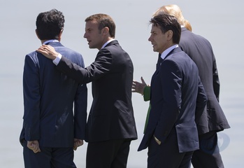 Donald J. Trump, Emmanuel Macron, Shinzo Abe, Guiseppe Conte