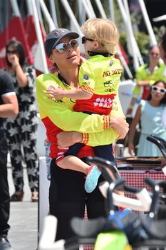 Charlene z mezem i z dziecmi na Water Bike Challenge