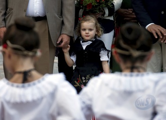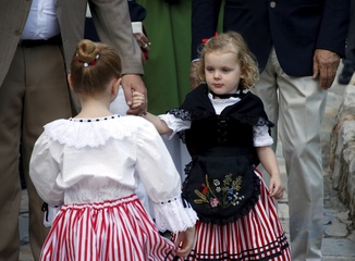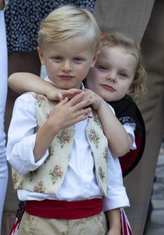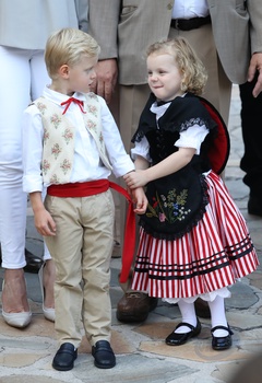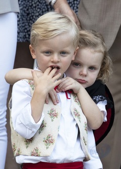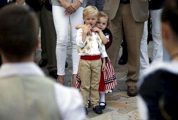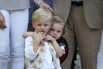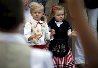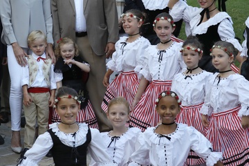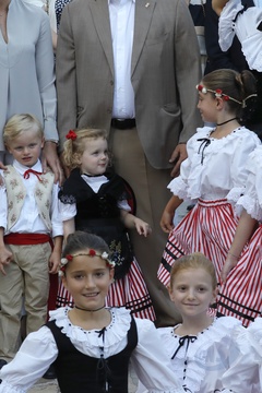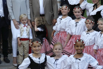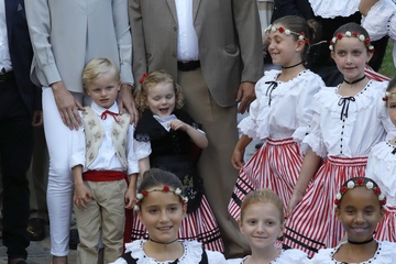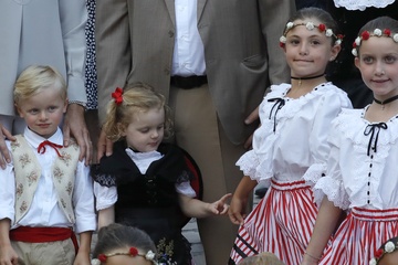 Ksiaze Albert z zona i dziecmi na tradycyjnym, monakijskim pikniku