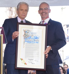 Michael Douglas z rodzina w Hollywoodzkiej Alei Slaw