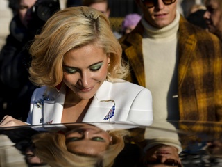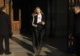 Goscie wracaja z pokazu Schiaparelli, Paryz