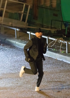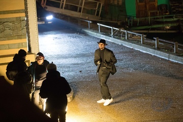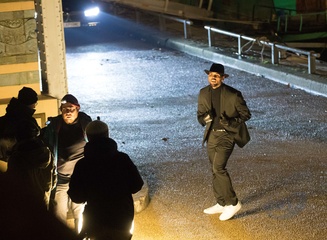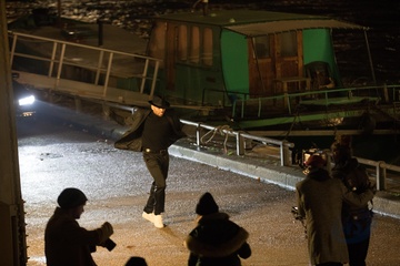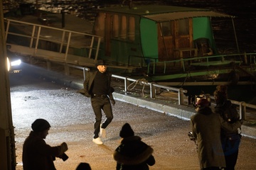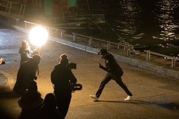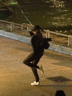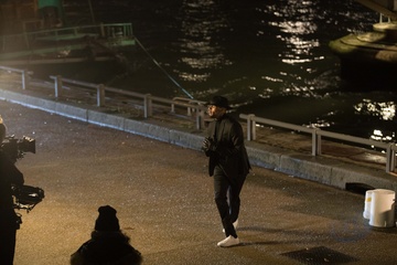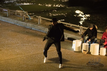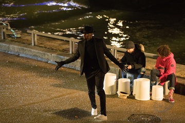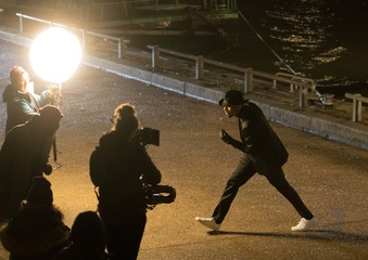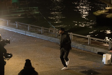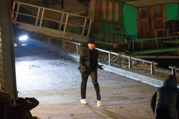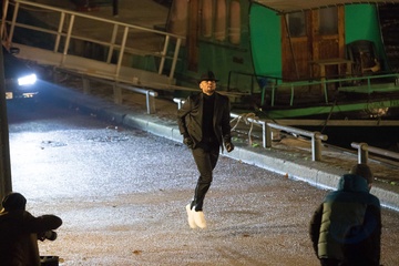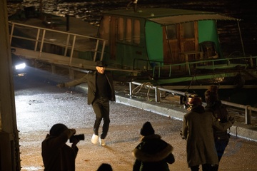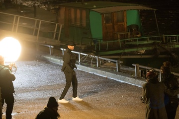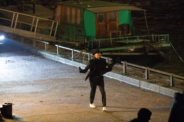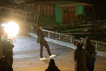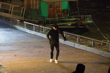 Chris Brown na planie video clipu nad brzegiem Sekwany