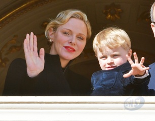 Ksiaze Albert z zona Charlene i z synem na obchodach Sainte Devote