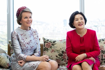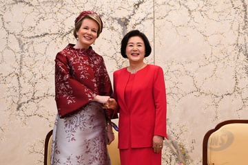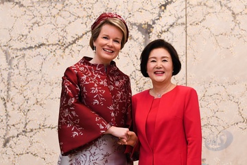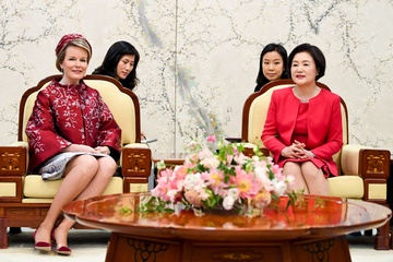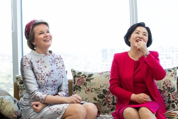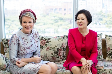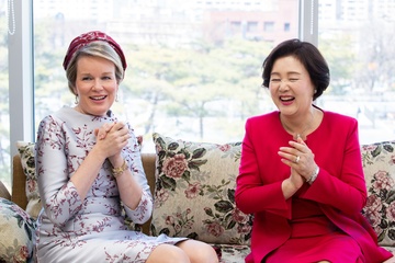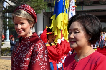 Belgijska para krolewska podczas wizyty w Korei