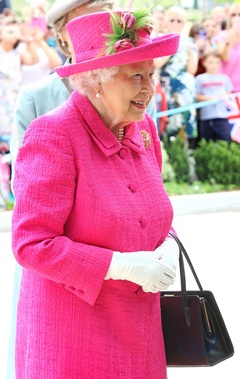 Krolowa Elzbieta II na rozowo w National Institute of Agricultural Botany