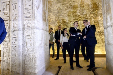 Macronowie w garniturach zwiedzaja Egipt