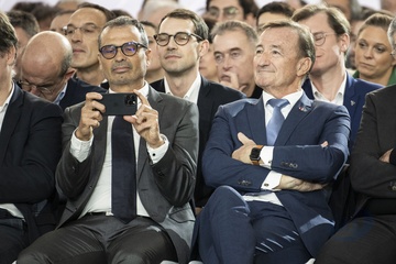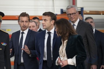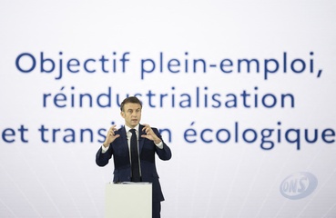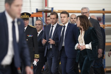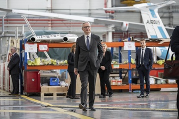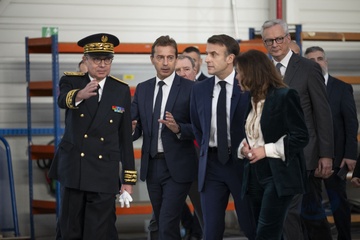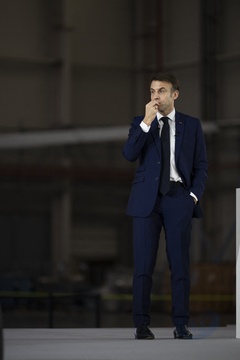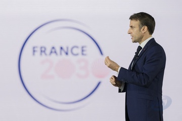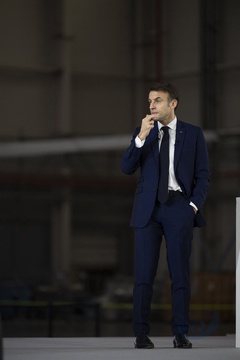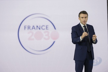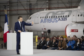 Le président Emmanuel Macron visite le site de Airbus à Toulouse à l'occasion des deux ans du plan d'investissement France 2030