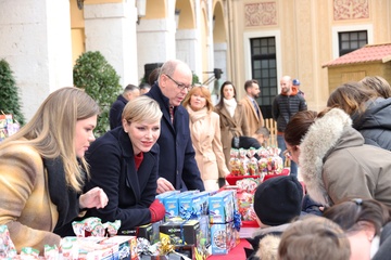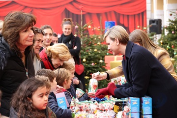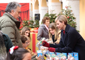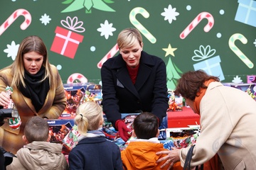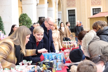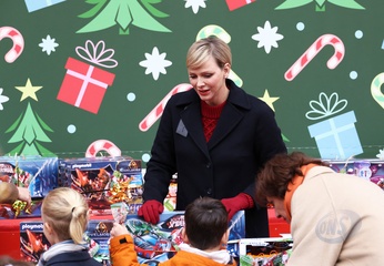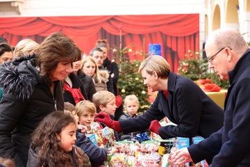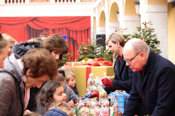 Książę Monako Albert II i księżna Charlene z Monako podczas dostarczania prezentów bożonarodzeniowych w Pałacu Monako