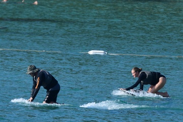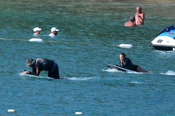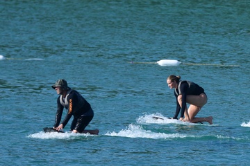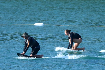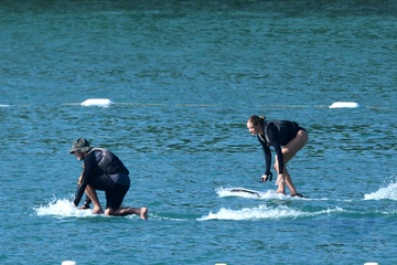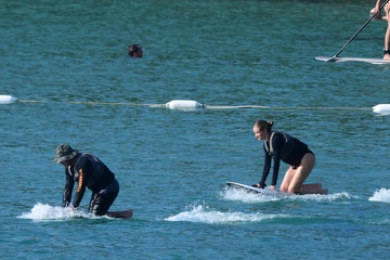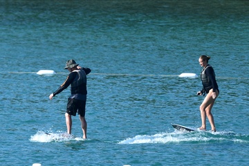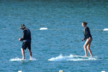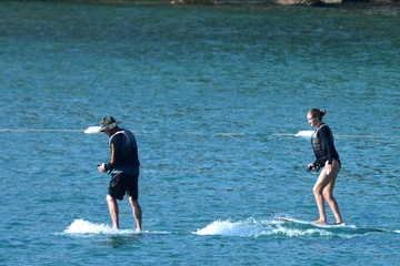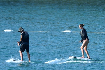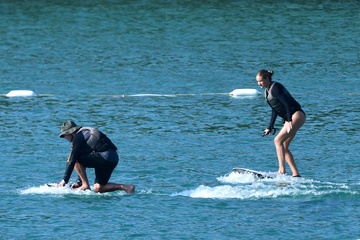 Exclusif - Prix spécial - No Web - Exclusif - Prix spécial - No Web - Jason Statham et sa compagne Rosie Huntington-Whiteley s'essaient à la planche volante ou foil électrique lors de leurs vacances à Phuket, Thaïlande