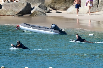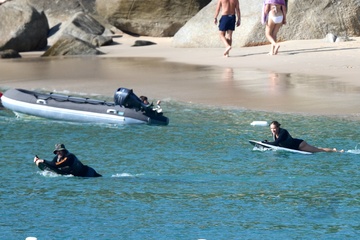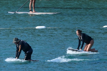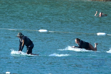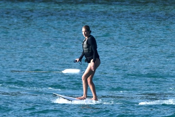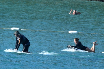 Exclusif - Prix spécial - No Web - Exclusif - Prix spécial - No Web - Jason Statham et sa compagne Rosie Huntington-Whiteley s'essaient à la planche volante ou foil électrique lors de leurs vacances à Phuket, Thaïlande 123