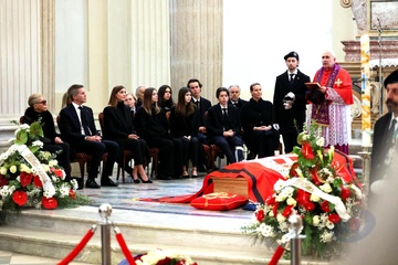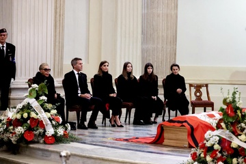 Książę Emmanuel-Philibert Sabaudii uczestniczy wraz z rodziną w stypie pogrzebowej swojego ojca, księcia Wiktora-Emmanuela Sabaudii, w kościele Sant'Uberto w Turynie. 54