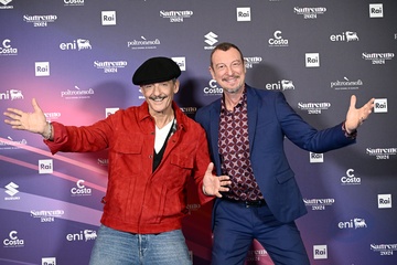 Amadeus and Rosario Fiorello during a photocall on the occasion of the 74th Sanremo Italian Song Festival, in Sanremo, Italy, 10 February 2024.