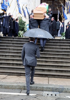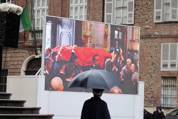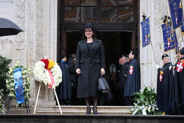 Les arrivées aux funérailles du prince Victor Emmanuel de Savoie en la cathédrale Saint-Jean-Baptiste de Turin