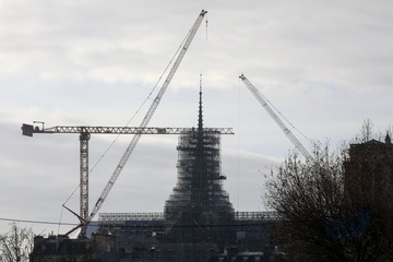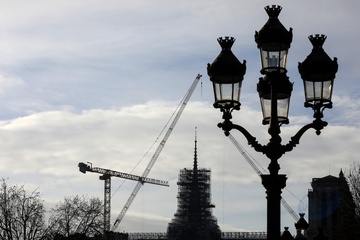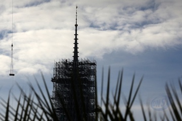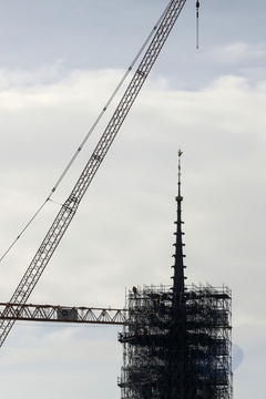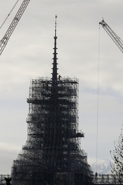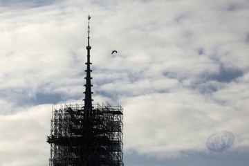lustracje przedstawiające iglicę i koguta Notre-Dame de Paris bez rusztowania