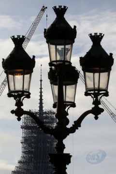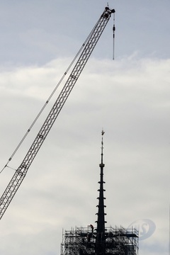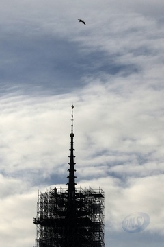 Illustrations de la flèche et du coq de Notre-Dame de Paris sans les échafaudages
