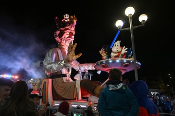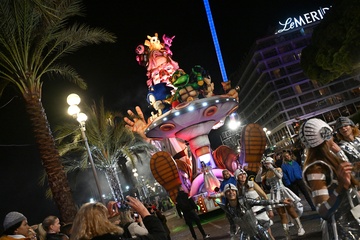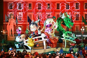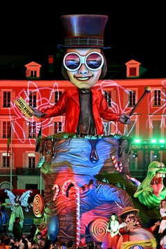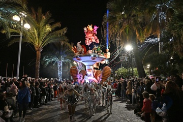 Pierwsza oświetlona parada karnawałowa karnawału w Nicei 2024 „Król Popkultury