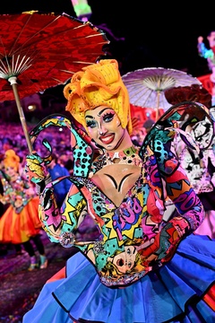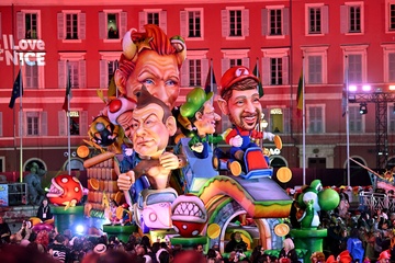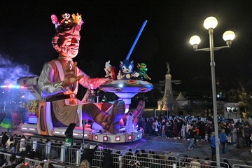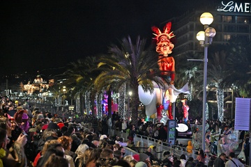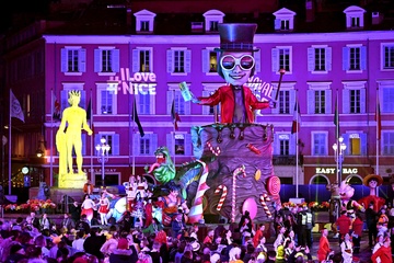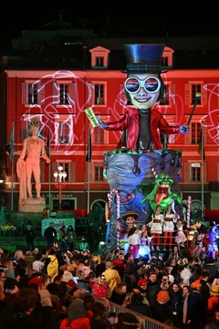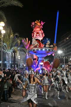 Premier corso carnavalesque illuminé du Carnaval de Nice 2024 "Roi de la Pop Culture"