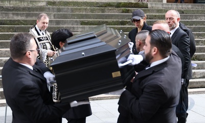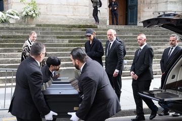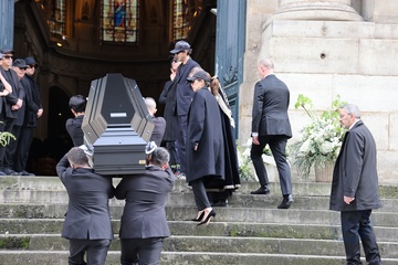 Przyjazdy na pogrzeb Jeana-Yvesa Le Fura w kościele Saint-Roch w Paryżu”