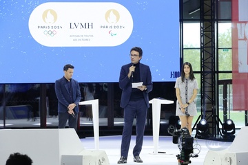 Présentation au Grand Palais Ephémère, des tenues (réalisées par la marque de luxe Berluti) qui seront portées par les athlètes lors de cérémonie d'ouverture des Jeux Olympiques de PARIS2024