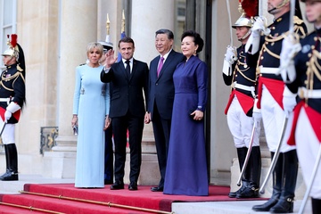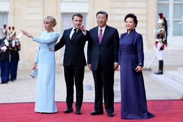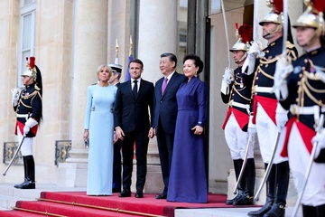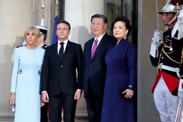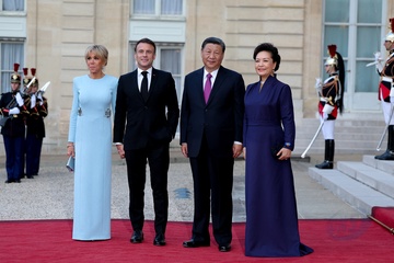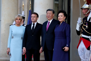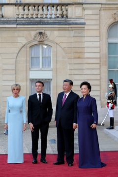 Arrivée des invités au dîner d'Etat en l'honneur du président chinois Xi Jinping et de sa femme la Première Dame Peng Liyuan au palais présidentiel de l'Elysée à Paris (Brigitte Macron Emmanuel Macron Xi Jinping Peng Liyuan)
