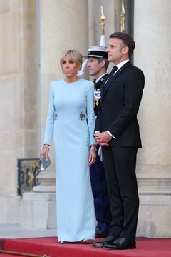 Arrivée des invités au dîner d'Etat en l'honneur du président chinois Xi Jinping et de sa femme la Première Dame Peng Liyuan au palais présidentiel de l'Elysée à Paris (Brigitte Macron Emmanuel Macron)