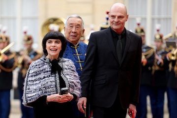 Arrivée des invités au dîner d'Etat en l'honneur du président chinois Xi Jinping et de sa femme la Première Dame Peng Liyuan au palais présidentiel de l'Elysée à Paris (Gong Li Jean-Michel Jarre)