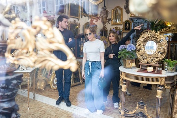 Jennifer Lopez opuszcza hotel La Réserve, aby udać się do słynnego sklepu z lustrami, a następnie cieszyć się paryskimi ogrodami z Lorenem Ridingerem, Bennym Mediną i jej córką Emme w Paryżu 58