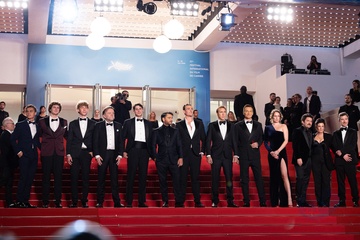 M - Montée des marches du film « The Surfer » lors du 77ème Festival International du Film de Cannes (Austen Wilmot, Robert Connolly, guest, Justin Rosniak, Alexander Bertrand, Nicolas Cage, Julian McMahon, Leonora Darby, Lorcan Finnegan, Brunella Cocchiglia et Thomas Martin)