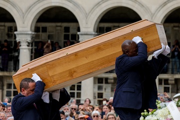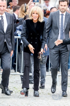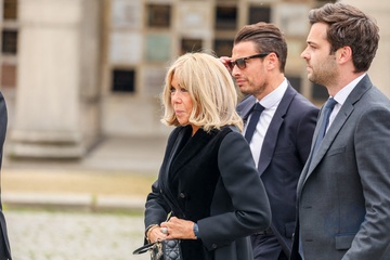 Arrivées aux obsèques de Françoise Hardy au cimetière du Père-Lachaise à Paris (Brigitte Macron)