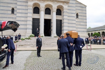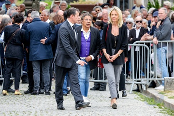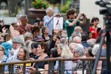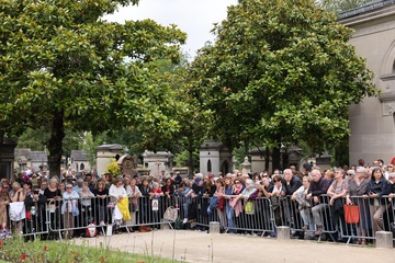 Arrivées aux obsèques de Françoise Hardy au cimetière du Père-Lachaise à Paris