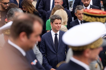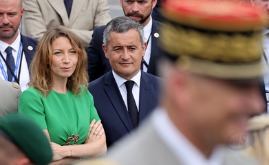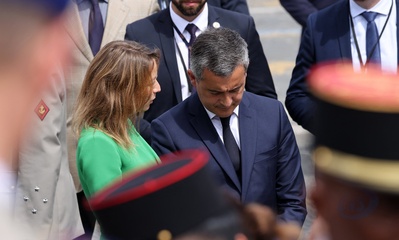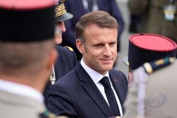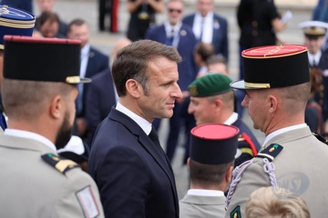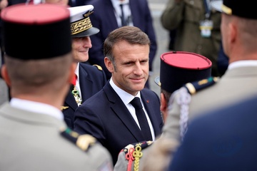 Prezydent Emmanuel Macron i jego żona Pierwsza Dama Brigitte Macron podczas spaceru po zakończeniu ceremonii 144. defilady wojskowej 14 lipca, w Święto Narodowe, w Paryżu 88