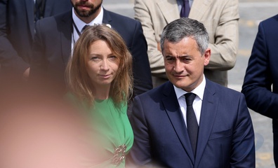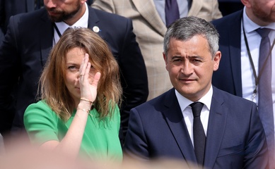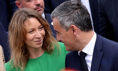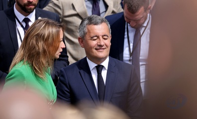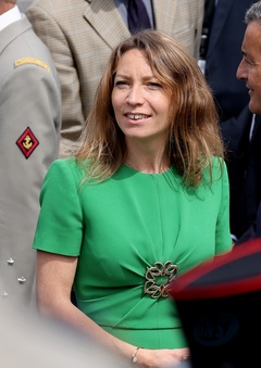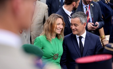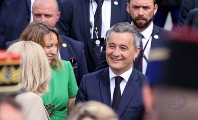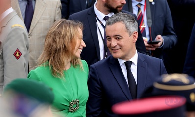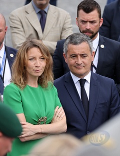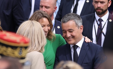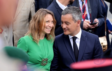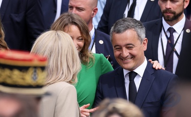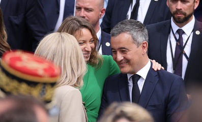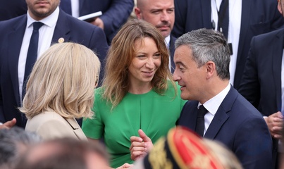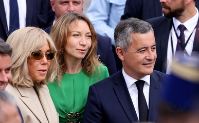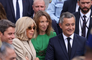 Le président Emmanuel Macron et sa femme la Première Dame Brigitte Macron lors d'un bain de foule à l'issue de la cérémonie du 144ème défilé militaire du 14 juillet, jour de la Fête Nationale, à Paris