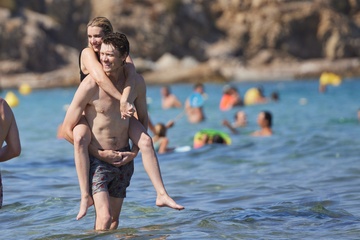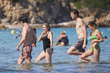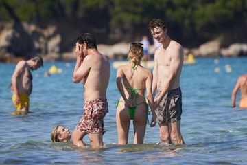 Ashley Benson, jej mąż Brandon Davis, Emma Roberts i jej narzeczony Cody John bawią się jak duże dzieci na plaży podczas wakacji w Zatoce Saint-Tropez 92