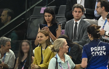 Célébrités assistent aux épreuves de gymnastiques lors des Jeux Olympiques de Paris 2024 (JO) au Palais omnisports Bercy Arena, à Paris