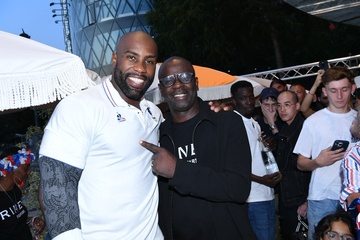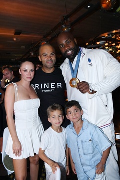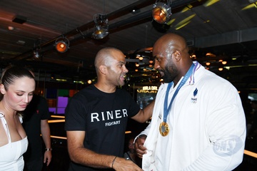 Exclusif - Prix Spécial - No Web - Teddy Riner fête son titre de champion Olympique de judo +100KG au restaurant "Podium" du groupe (Les bistrots Pas Parisiens) à Paris