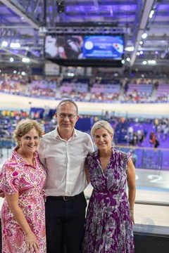 Księżna Sophie z Edynburga patrzy, jak Brytyjki wygrywają finał sprintu drużynowego kobiet w kolarstwie lekkoatletycznym podczas Igrzysk Olimpijskich 2024 w Paryżu (OG) na torze Vélodrome National w Saint-Quentin-en-Yvelines 71