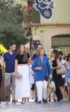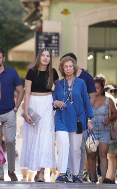 La reine Letizia d'Espagne, ses filles la princesse Leonor et l'infante Sofia, la reine Sofia, se baladent à Palma de Majorque