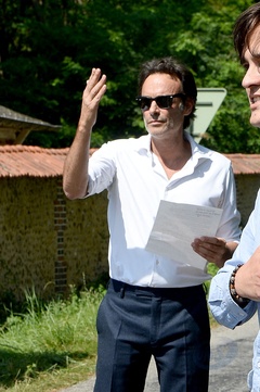 Anthony Delon i jego przyrodni brat Alain-Fabien odkrywają hołdy przed bramą posiadłości Douchy, na kilka godzin przed pogrzebem ich ojca, Alaina Delona 52