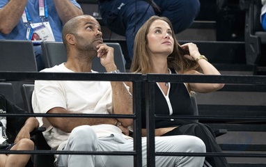 Tony Parker i jego partnerka Tony Parker wraz ze swoją partnerką Agathe Teyssier biorą udział w zawodach gimnastyki artystycznej kobiet, których finał odbywa się podczas Igrzysk Olimpijskich w Paryżu w 2024 r.