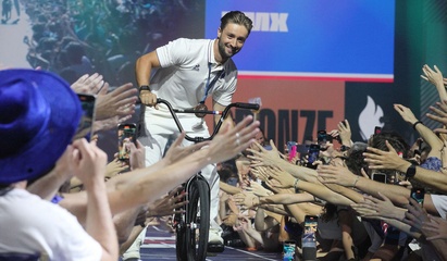 Gwiazdy oglądają zwycięstwo Francuza Félixa Lebruna w ćwierćfinale zawodów tenisa stołowego podczas Igrzysk Olimpijskich Paryż 2024 (OG) w Arena Paris Sud