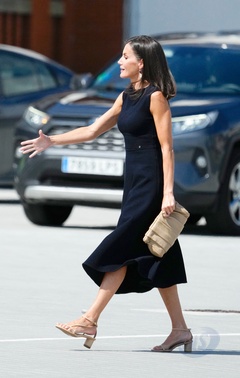 Król Felipe VI, królowa Hiszpanii Letycja i księżniczka Leonor podczas ceremonii przekazania zwolnień królewskich nowym oficerom Marynarki Wojennej w Marín