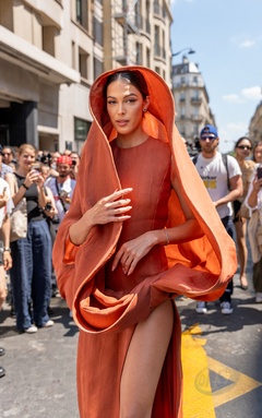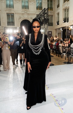 Iris Mittenaere Miss Universe celebryci na na pokazie mody Haute-Couture „Stephane Rolland” jesień-zima 2024/2025 podczas Tygodnia Mody w Paryżu